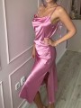 Midi saténové šaty jsou vyrobeny ze saténu. S rozparkem na boku. Zapínání na zip v boku.