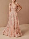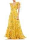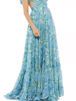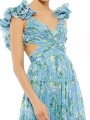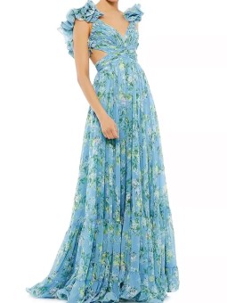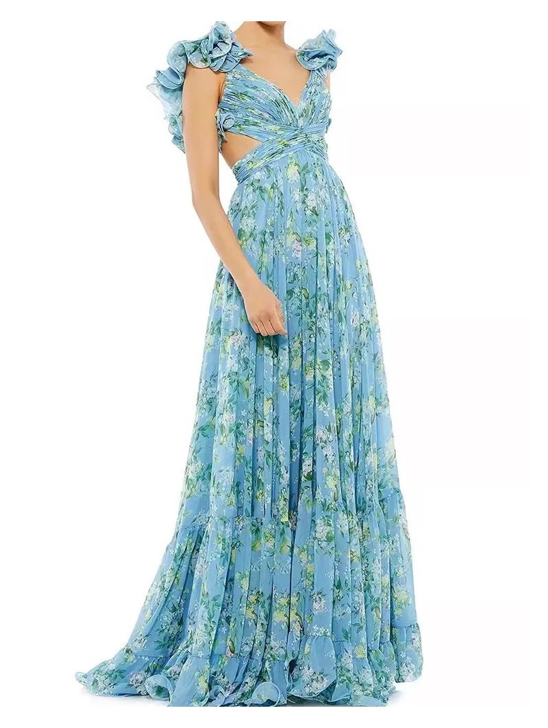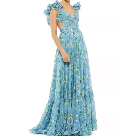 Šaty mají romantické volánky na ramenou.