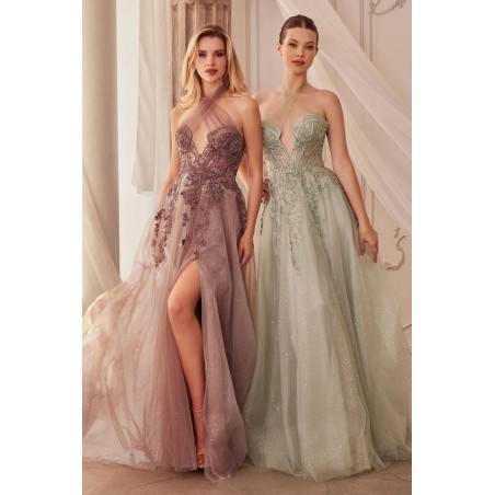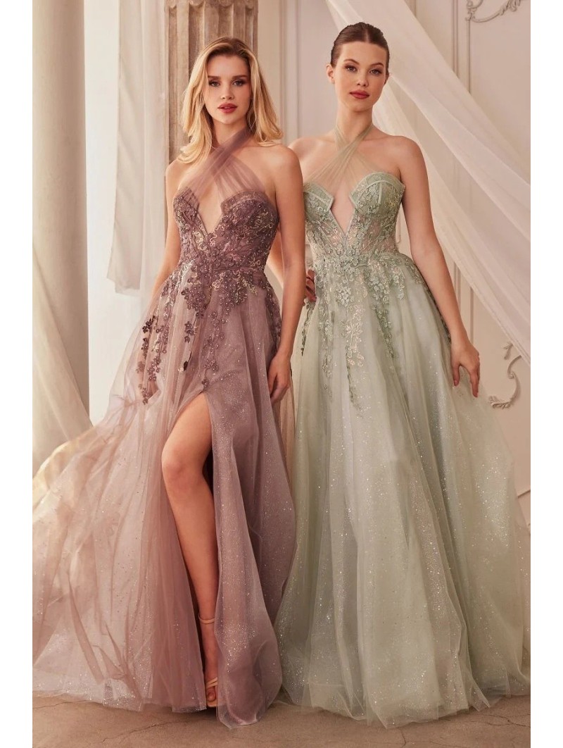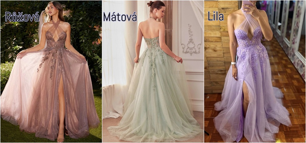 Třpytivé tylové šaty jako pro vílu. Pošité květinovou krajkou.
