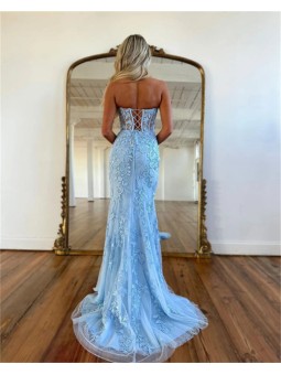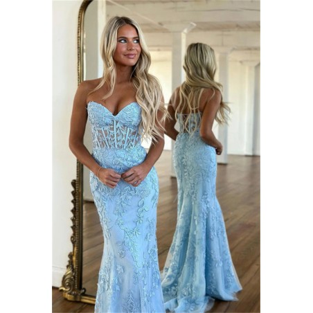Okouzlete na plese, maturitě nebo slavnostní události v těchto nádherných společenských šatech s propracovanou krajkovou výšivkou. Šaty mají smyslný korzetový živůtek se šněrováním na zádech, díky kterému perfektně padnou na postavu a zvýrazní ženské křivky.