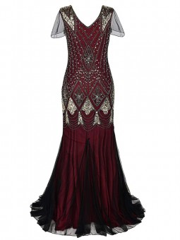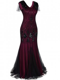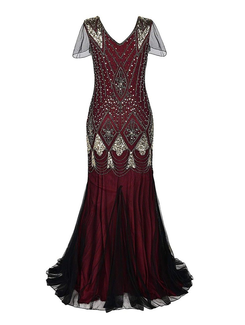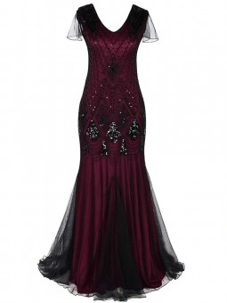 Vintage šaty zdobené flitry a korálky se sukní střihu mořské panny.