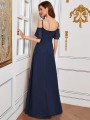 Romantické šaty se spadlými volánkovými rameny a špagetovými ramínky. Šaty jsou s rozparkem