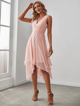 Asymetrické midi šaty s V výstřihem.