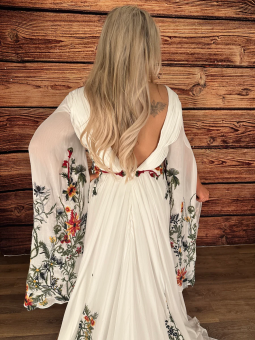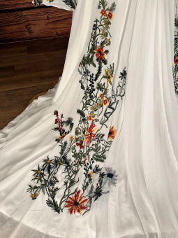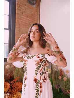 Éterické květinové šifónové šaty s dlouhými rukávy na zip. Možné šití na míru za příplatek +500,- Kč (doba doručení kolem 6-8 týdnů při šití na míru) . Pro volbu šití na míru zvolte velikost NA MÍRU a přidejte Vaše míry dle instrukcí ODKAZ ZDE  Při objednání na míru akceptujeme pouze platby předem (převodem/ GoPay).