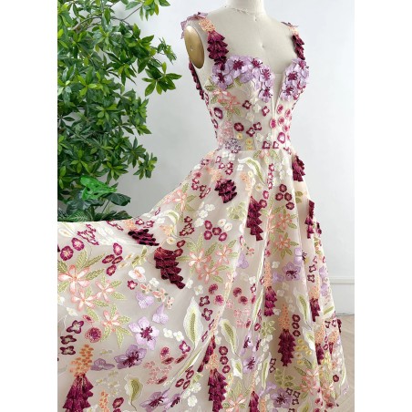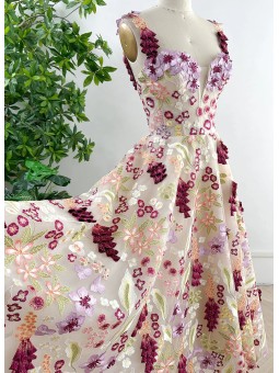 Květinové tylové šaty  na šněrovačku. Standardně je délka šatů až na zem dle tabulky, ale může být zkrácená jako na obrázku. Napište nám délku šatů bez ohledu, jestli objednáváte konfekční velikost. Jen delší šaty než je v tabulce je nutné objednat na míru. Možné šití na míru za příplatek +500,- Kč (doba doručení kolem 6-8 týdnů při šití na míru) . Pro volbu šití na míru zvolte velikost NA MÍRU a přidejte Vaše míry dle instrukcí ODKAZ ZDE  Při objednání na míru akceptujeme pouze platby předem (převodem/ GoPay).