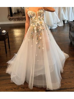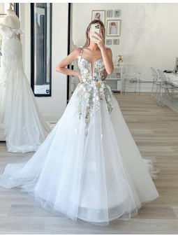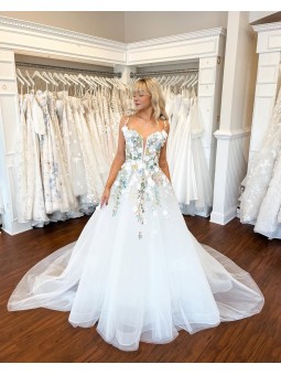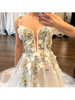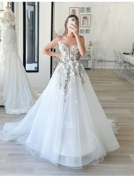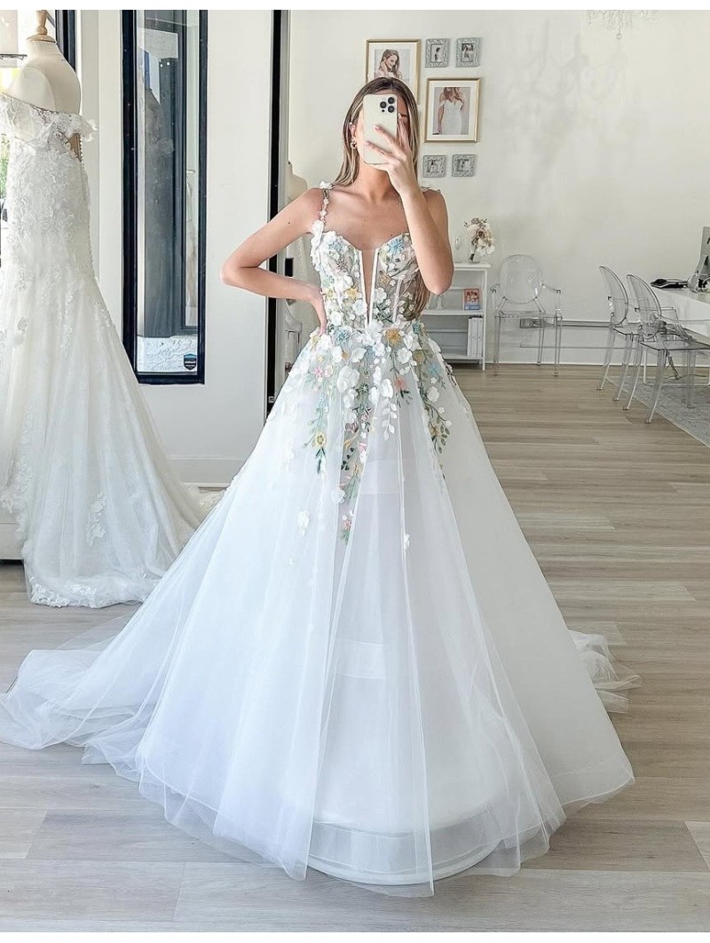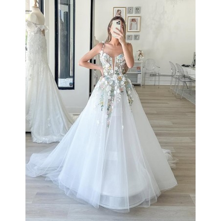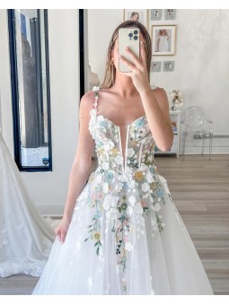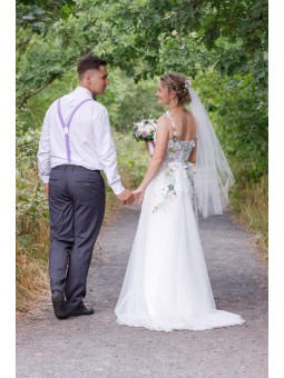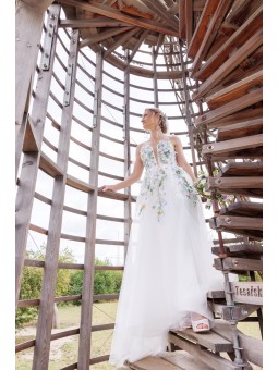 Květinové tylové šaty na zip.V rámci šití na míru lze ušít i na šněrovačku.  Možné šití na míru za příplatek +500,- Kč (doba doručení kolem 6-8 týdnů při šití na míru) . Pro volbu šití na míru zvolte velikost NA MÍRU a přidejte Vaše míry dle instrukcí ODKAZ ZDE  Při objednání na míru akceptujeme pouze platby předem (převodem/ GoPay).