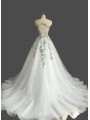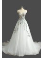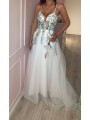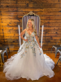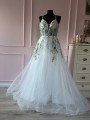 Okouzlující svatební šaty Marrisa jsou ideální pro nevěsty, které hledají romantický, ale zároveň originální vzhled. Bohatá tylová sukně se třpytivým leskem a vlečkou dodává slavnostní nádech, zatímco živůtek s hlubokým výstřihem a tenkými ramínky působí smyslně a něžně.