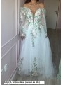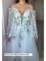 Tyto elegantní svatební šaty jsou snem každé nevěsty, která touží po jemném, ale výrazném vzhledu. Šaty jsou ušity z tylu a zdobeny bohatou květinovou výšivkou, která působí romanticky.