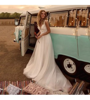 Svatební boho šaty - na zip. Možné šití na míru za příplatek +400,- Kč (doba doručení kolem 6-8 týdnů při šití na míru) . Pro volbu šití na míru zadejte VELIKOST NA MÍRU a přidejte Vaše míry jako poznámku k objednávce: prsa, obvod pod prsy, pas, boky, délka šatů od ramen na zem, výška podpatků a Vaše výška. Při objednání na míru akceptujeme pouze platby předem (převodem/GoPay).