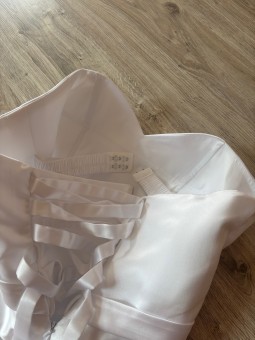 Šaty jsou na šněrovačku,  přes prsa a v pase je vůle. Boky jsou orientační, sukně šatů je A střihu.