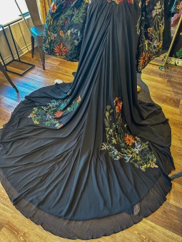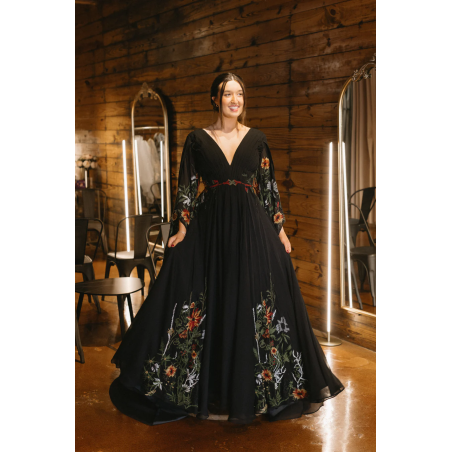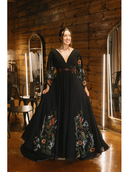 Éterické květinové šifónové šaty s dlouhými rukávy na zip. Možné šití na míru za příplatek +500,- Kč (doba doručení kolem 6-8 týdnů při šití na míru) . Pro volbu šití na míru zvolte velikost NA MÍRU a přidejte Vaše míry dle instrukcí ODKAZ ZDE  Při objednání na míru akceptujeme pouze platby předem (převodem/ GoPay).