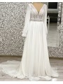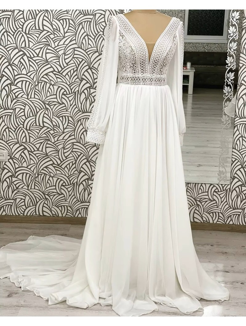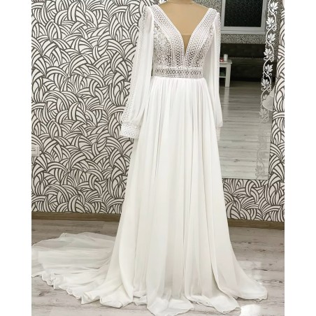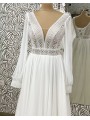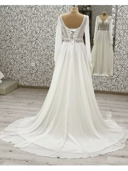 Svatební boho šaty s dlouhým rukávem na šněrovačku. Možné šití na míru za příplatek +500,- Kč (doba doručení kolem 6-8 týdnů při šití na míru) . Pro volbu šití na míru zvolte velikost NA MÍRU a přidejte Vaše míry dle instrukcí ODKAZ ZDE  Při objednání na míru akceptujeme pouze platby předem (převodem/ GoPay).