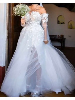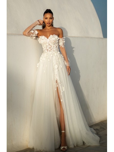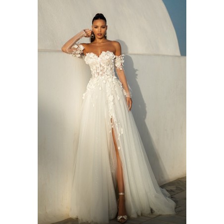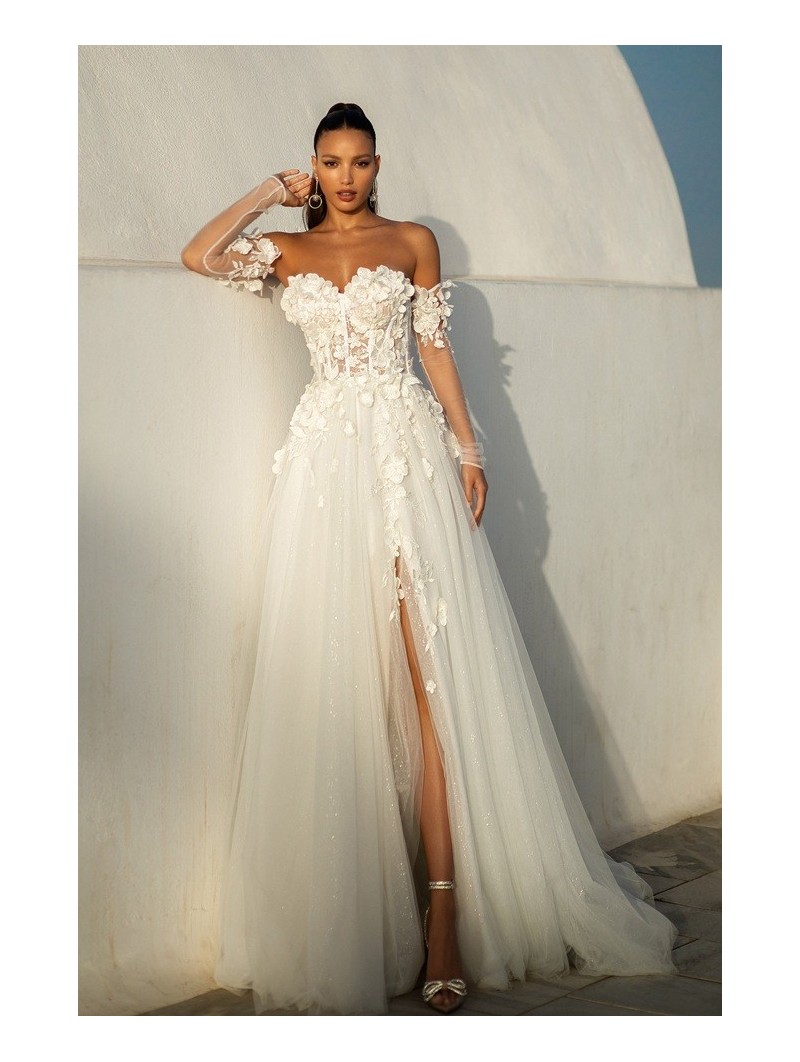 Květinové tylové šaty s rozparkem a dlouhými rukávy na šněrovačku. Šaty jsou šité dle prvních 3 obrázků. Reálné foto šatů za těmito fotografiemi. Možné šití na míru za příplatek +500,- Kč (doba doručení kolem 6-8 týdnů při šití na míru) . Pro volbu šití na míru zvolte velikost NA MÍRU a přidejte Vaše míry dle instrukcí ODKAZ ZDE Při objednání na míru akceptujeme pouze platby předem (převodem/ GoPay).