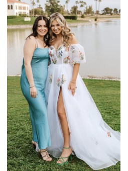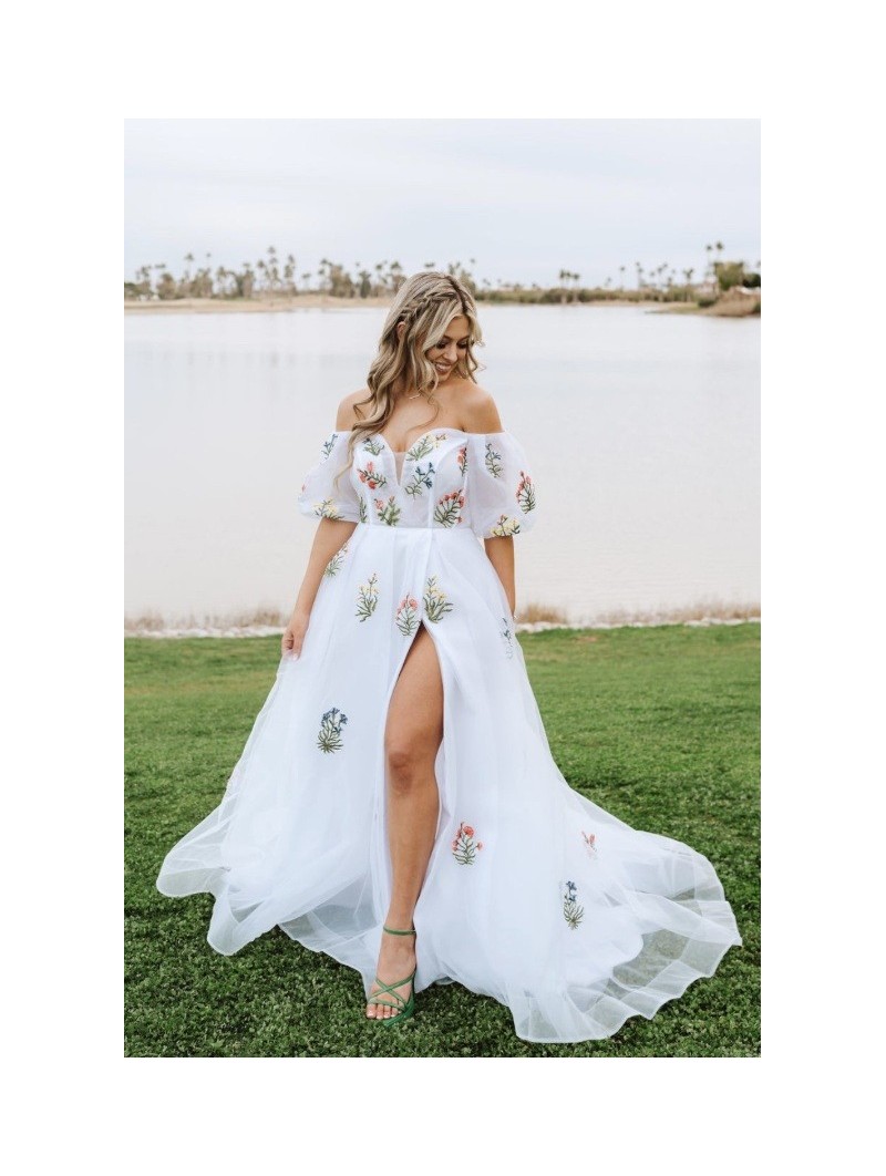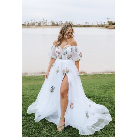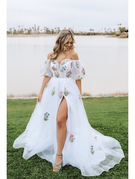 Květinové tylové šaty na zip s rozparkem a balónovými rukávy . Možné šití na míru za příplatek +500,- Kč (doba doručení kolem 6-8 týdnů při šití na míru) . Pro volbu šití na míru zvolte velikost NA MÍRU a přidejte Vaše míry dle instrukcí ODKAZ ZDE Při objednání na míru akceptujeme pouze platby předem (převodem/ GoPay).