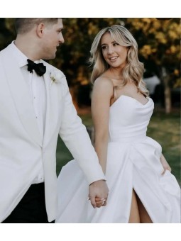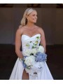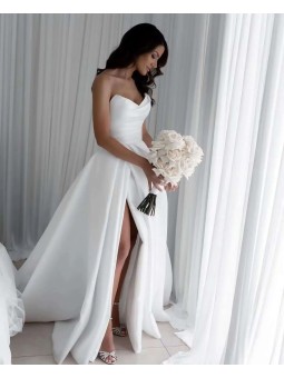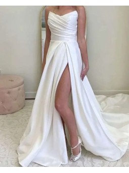 Luxusní saténové svatební šaty s rozparkem – moderní elegance pro výjimečný den
