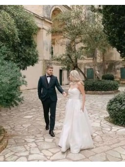 Šaty mají krásně splývavou sukni, která při chůzi vytváří luxusní efekt a působí velmi vznešeně. Eleganci doplňuje možnost volby zapínání – zip s ozdobnými knoflíky pro čistý, minimalistický vzhled, nebo šněrovačka, která zajistí dokonalé přizpůsobení postavě.