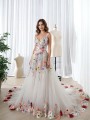 jemný tyl s bohatou květinovou výšivkou