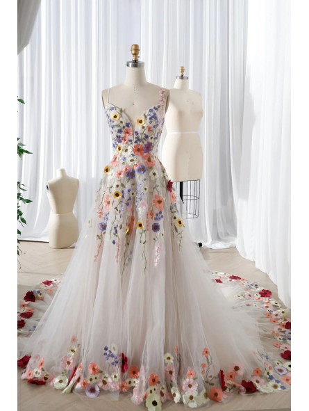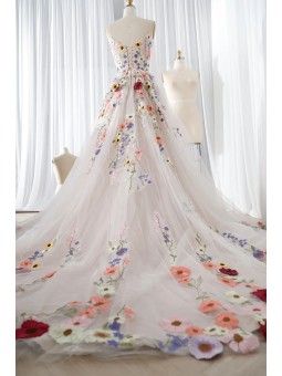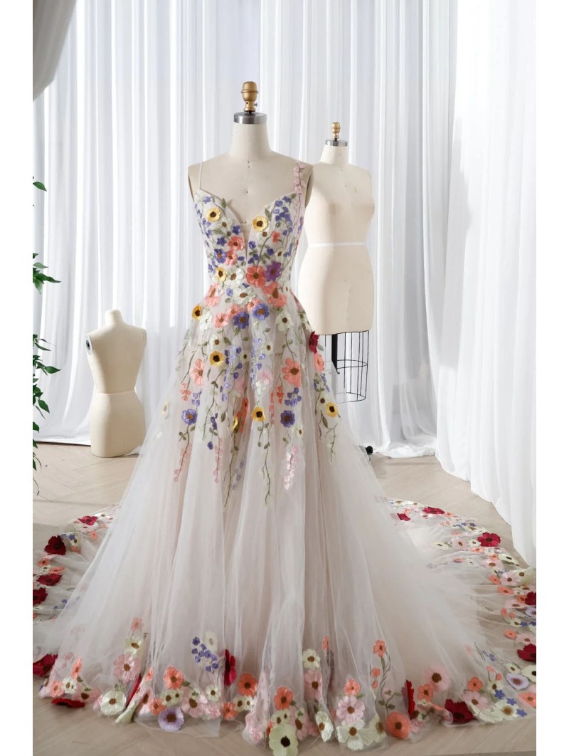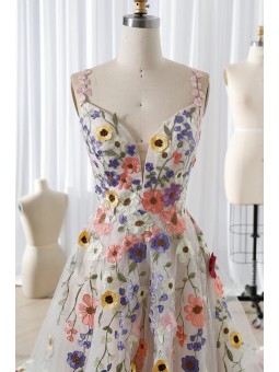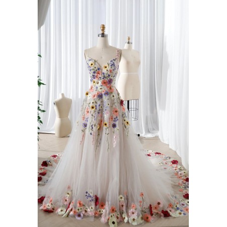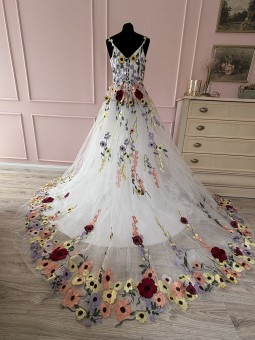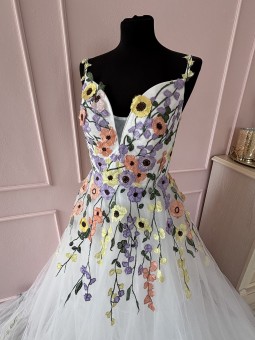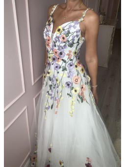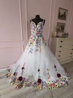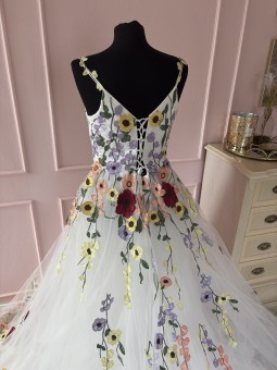 Květinové tylové šaty. Zapínání na šněrovačku.