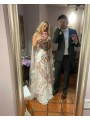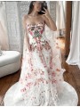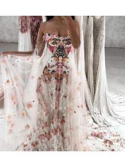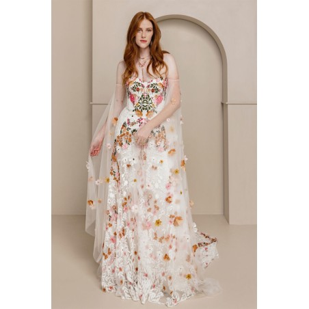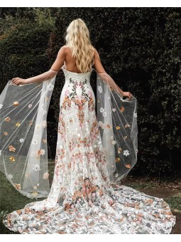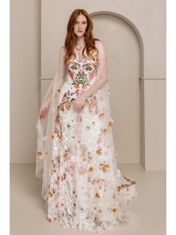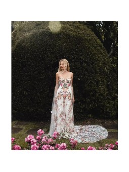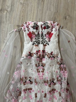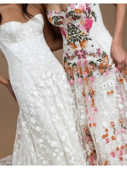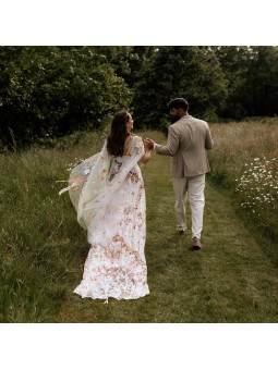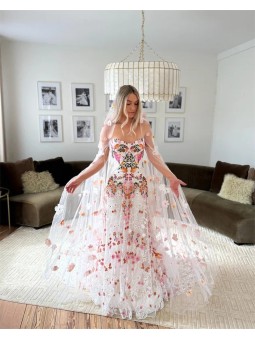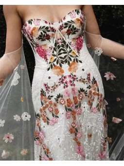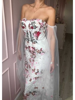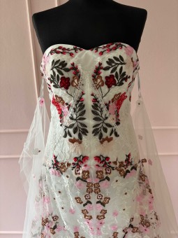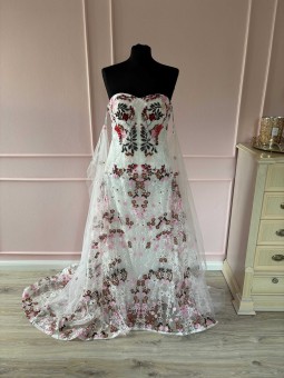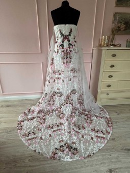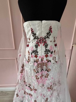 Tylové květinové šaty na zip.  S tylovými dlouhými rukávy, lze nosit i bez nich. Šití na míru za příplatek +500,- Kč (doba doručení kolem 6-8 týdnů při šití na míru) .