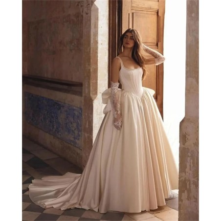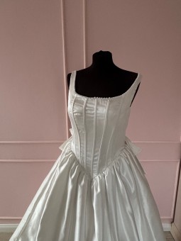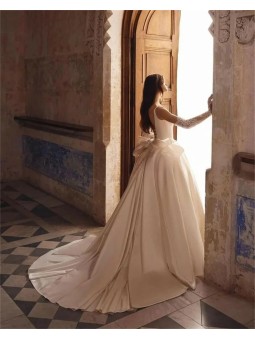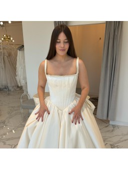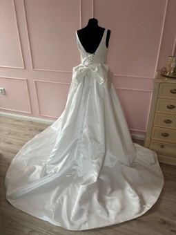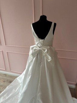 Dominantním prvkem šatů je velká saténová mašle, která dodává celému modelu romantický a zároveň luxusní nádech. Mašle je odepínací (na knoflík), takže si vzhled můžete snadno upravit podle svého stylu či typu obřadu.