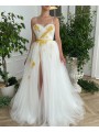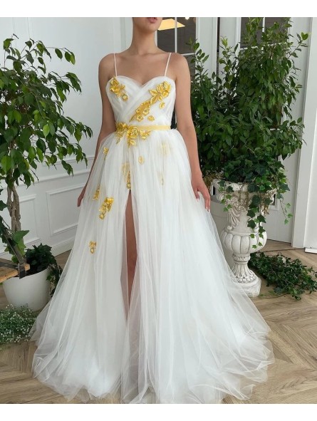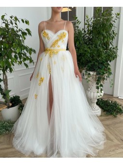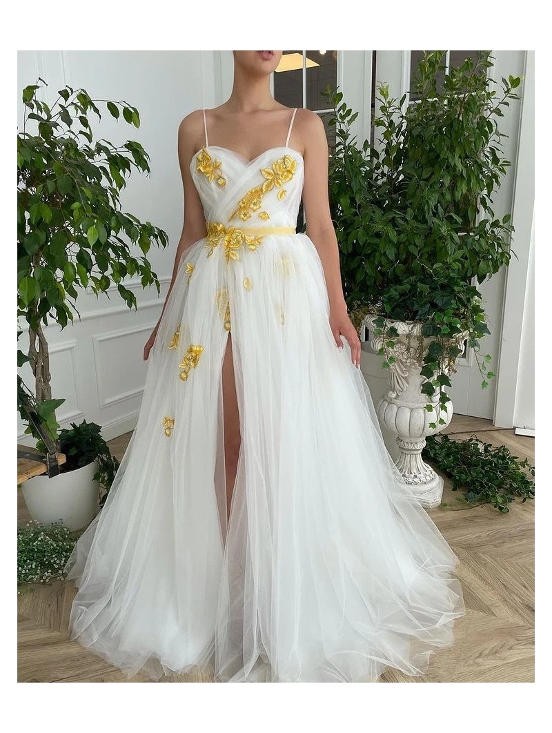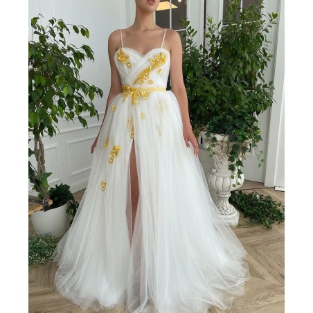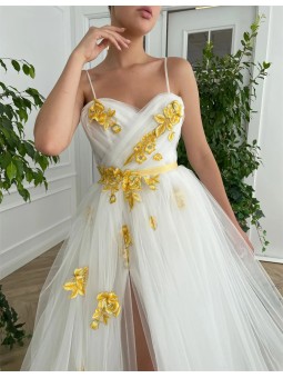 Květinové tylové šaty s rozparkem na zip.  Možné šití na míru za příplatek +500,- Kč (doba doručení kolem 6-8 týdnů při šití na míru) . Pro volbu šití na míru zvolte velikost NA MÍRU a přidejte Vaše míry dle instrukcí ODKAZ ZDE  Při objednání na míru akceptujeme pouze platby předem (převodem/ GoPay)