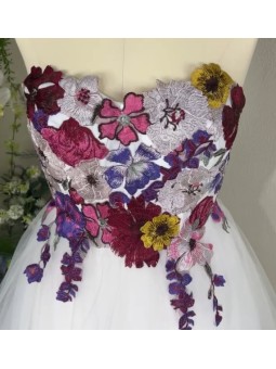Květinové tylové šaty na zip. Možné šití na míru za příplatek +500,- Kč (doba doručení kolem 6-8 týdnů při šití na míru) . Pro volbu šití na míru zvolte velikost NA MÍRU a přidejte Vaše míry dle instrukcí ODKAZ ZDE Při objednání na míru akceptujeme pouze platby předem (převodem/ GoPay)