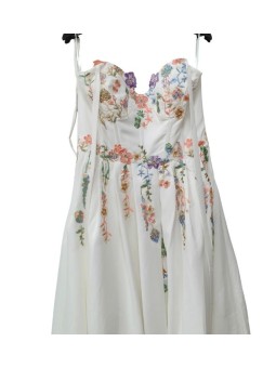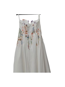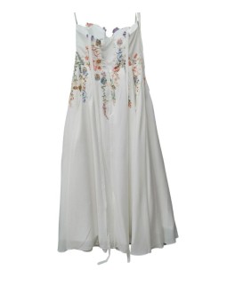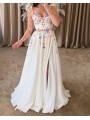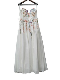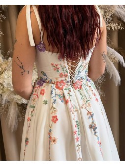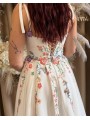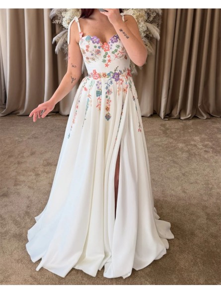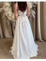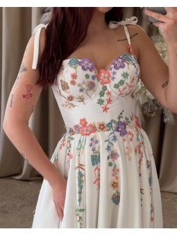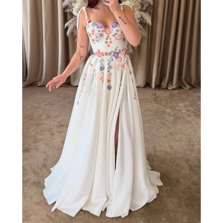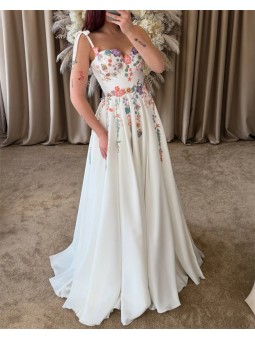 Květinové šifónové svatební šaty na šněrovačku. Sukně s rozparkem. Při šití na míru lze model poupravit.