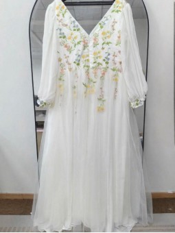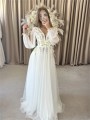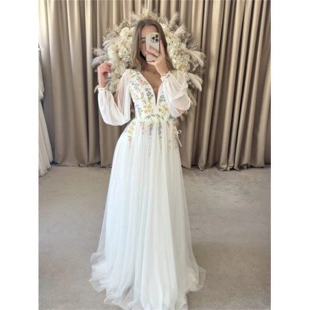 Květinové šifónové svatební šaty s dlouhým rukávem na zip. Při šití na míru lze model poupravit.