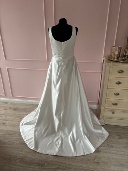 Vstupte do svého velkého dne v šatech, které spojují nadčasovou eleganci a moderní ženskost. Tyto svatební šaty s čistou siluetou okouzlí na první pohled díky dokonale propracovanému střihu, který přirozeně zvýrazňuje pas a prodlužuje postavu.