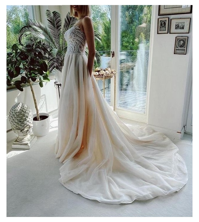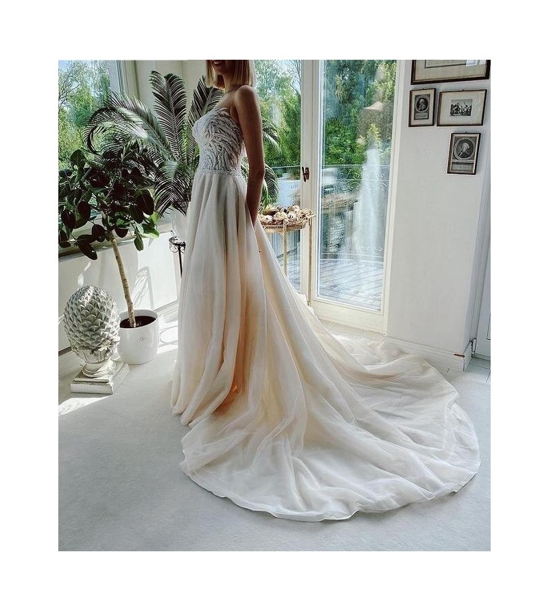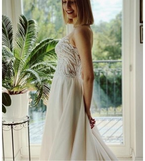 Svatební šaty na zip a knoflíky. Šití pouze na míru (doba doručení kolem 6-8 týdnů při šití na míru) . Do poznámky přidejte Vaše míry dle instrukcí https://www.nejkrasnejsisaty.cz/content/17-jak-zmerit-miry .Při objednání na míru akceptujeme pouze platby předem (převodem / GoPay).
