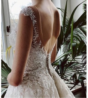 Svatební šaty na zip, knoflíky jsou ozdobné. Šití pouze na míru (doba doručení kolem 6-8 týdnů při šití na míru) . Do poznámky přidejte Vaše míry dle instrukcí Odkaz .Při objednání na míru akceptujeme pouze platby předem (převodem / GoPay).