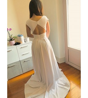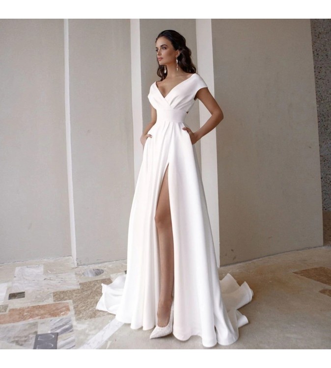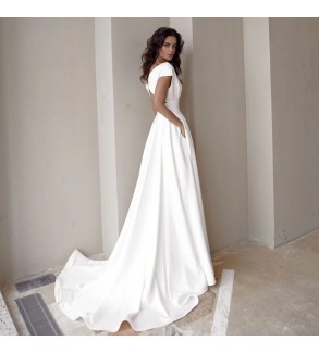 Svatební šaty s rozparkem a kapsami. Zapínání na zip a knoflíky. Šití pouze na míru (doba doručení kolem 6-8 týdnů při šití na míru) . Do poznámky přidejte Vaše míry dle instrukcí Odkaz .Při objednání na míru akceptujeme pouze platby předem (převodem / GoPay).