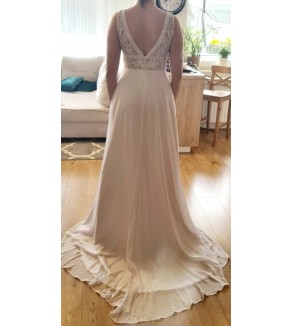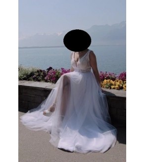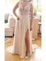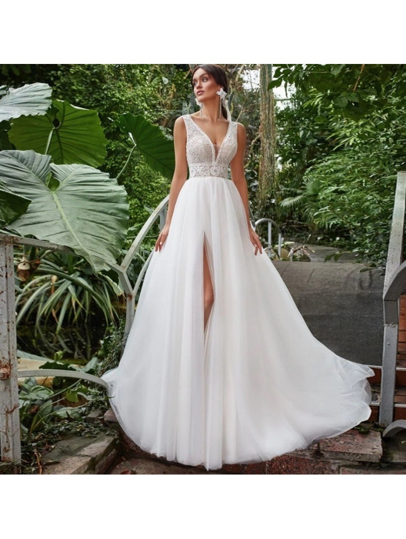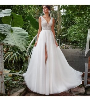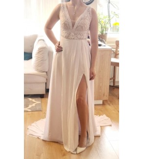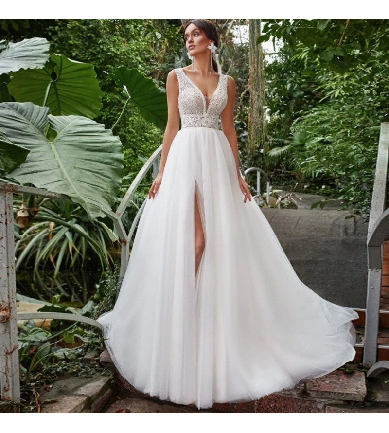 Svatební šaty s rozparkem. Zapínání na zip. Šití pouze na míru (doba doručení kolem 6-8 týdnů při šití na míru) . Do poznámky přidejte Vaše míry dle instrukcí Odkaz .Při objednání na míru akceptujeme pouze platby předem (převodem / GoPay).