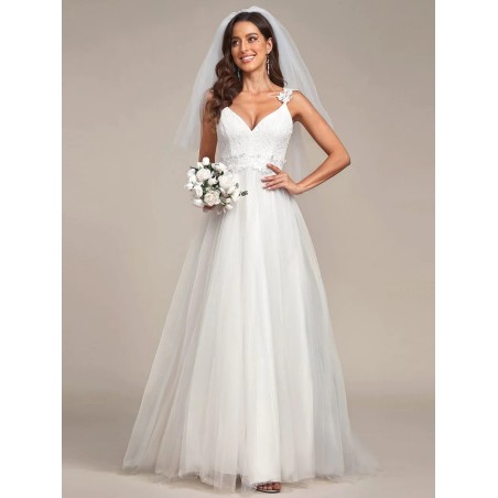 Jednoduché svatební šaty na zip nebo popůlnočky s ramínky ozdobené květinovou krajkou
