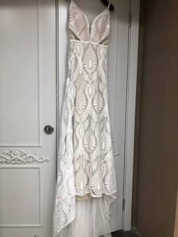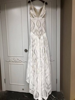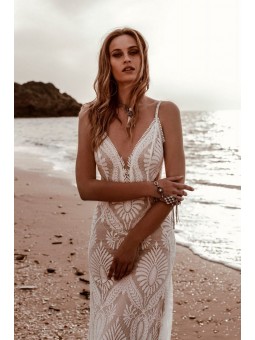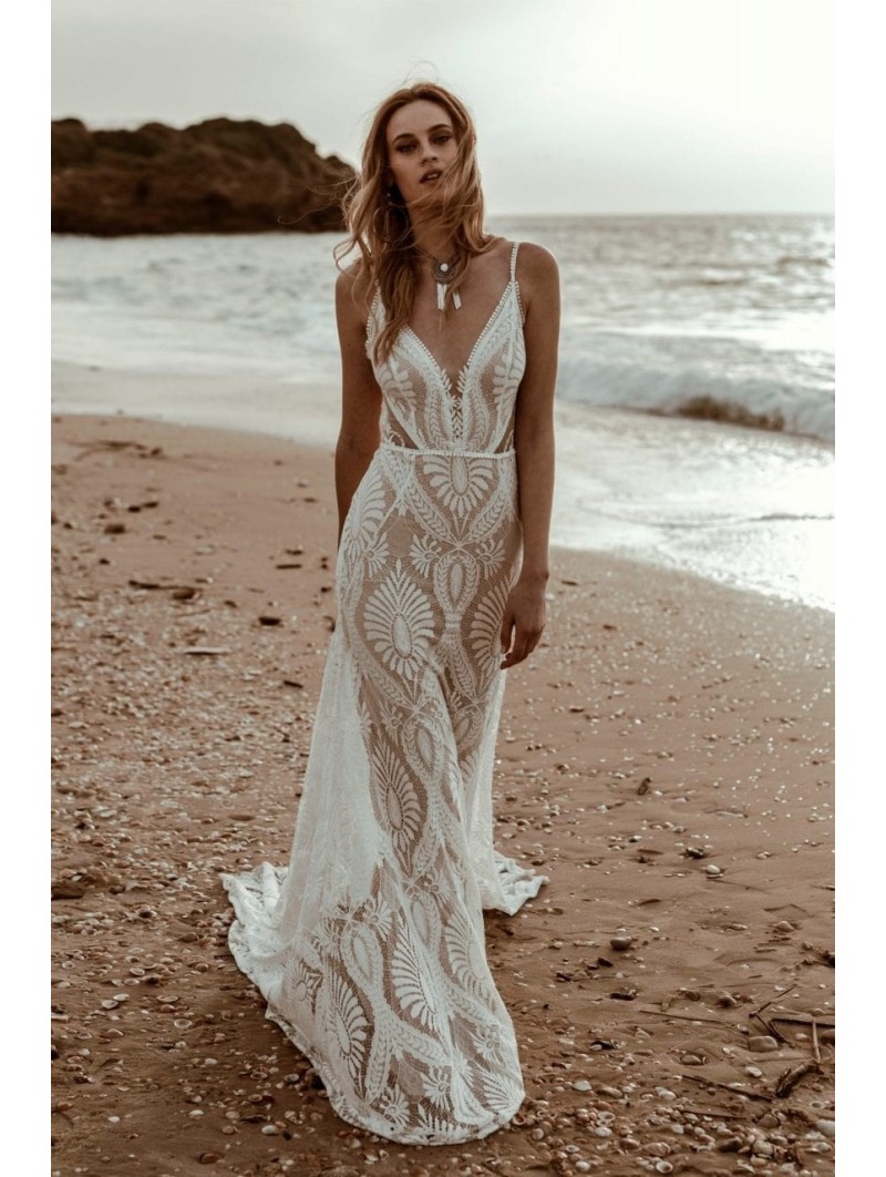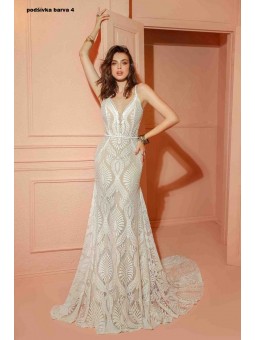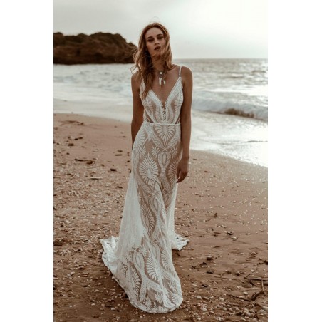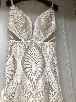 Krajkové šaty s V výstřihem a odkrytými zády. Šaty v boho stylu. Zapínání na zip.